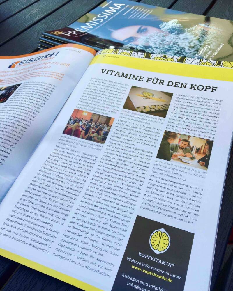 Liebe Leute, da darf ich mich sehr geschätzt fühlen. Ich konnte mich und meine Ideen zum Thema "Schutz und Erhaltung der psychischen Gesundheit" in der Premissima der ERZ.art GmbH (www.premissima.de) darstellen. Ich finde, dass das Thema extrem wichtig ist, und wir uns alle damit beschäftigen sollten.
