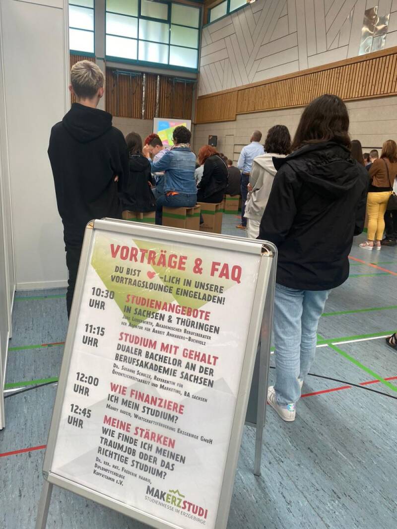 Sowohl in der Goldnen Sonne (Thema: emotionale und Verhaltensauffälligkeiten bei Menschen mit geistigen Handicaps) sowie in der VHS Annaberg-Buchholz (Thema: Crystal-Meth-Konsum im Erzgebirge, siehe anderer Beitrag) war ich positiv überrascht, ob der erfreulichen Resonanz. Und schlussendlich durfte ich zum Samstag der Studienmesse der Wirtschaftsförderung Erzgebirge sowie der Arbeitsagentur Erzgebirge beiwohnen und einen Beitrag zum Thema Berufs- und Studienbildung leisten. Letzteres hatte mir sehr große Freude bereitet und gleichzeitig meine Gedankenmaschine angeworfen, sich stärker im Bereich der schulischen Berufsbildung zu engagieren, um Schülerinnen und Schülern im Hinblick auf ihre Bildungs- und schulischen Perspektiven zu fördern und zu unterstützen. Teilweise wird das bereits vom Verein Kopfvitamin übernommen, allerdings ist dieser Weg sicherlich noch ausbaufähig. Eine gute Verzahnung von eignungsbezogenen Einschätzung sowie praktischen Erfahrungen könnte dabei lebenskompetenzorientiert einen zuverlässigeren Blick ermöglichen, welcher Beruf zu eigenen Ansprüchen, Bedürfnissen und Orientierungen passen könnte.
