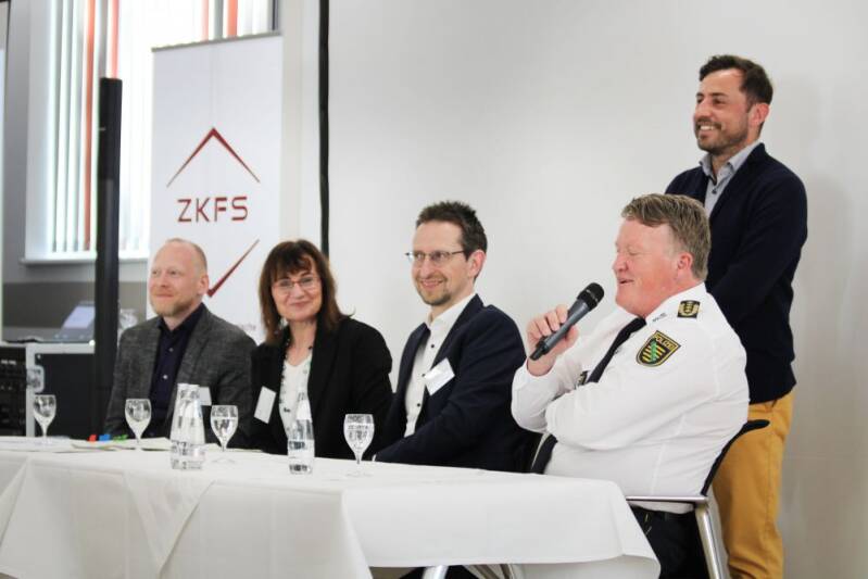 Dabei waren die Akteur:innen Ines Vorsatz (kriminalpräventiver Rat Chemnitz), Dr. Christoph Meißelbach (Sächsisches Institut für Polizei- und Sicherheitsforschung), Herr Jörg Kubiessa (Landespolizeipräsident der Polizei Sachsen) und Prof. Frank Asbrock (Leitung ZKFS, Professur für Sozialpsychologie der TU Chemnitz) dazu geladen, sich noch einmal den Grundlagen zum Sicherheitsgefühl in Sachsen zu widmen und die gesamte Fachveranstaltung abzurunden.