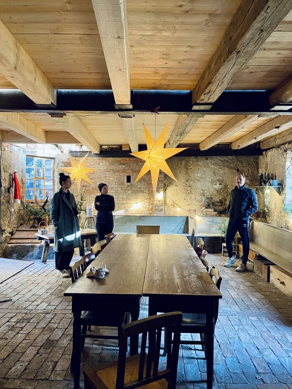 Ganz liebe Menschen von der Baderei Kamenz, die uns das gesamte Anwesen zeigten. Eine tolle und inspirierende Vision von Nachhaltigkeit und Aufleben des ländlichen Raums, indem eine längst vergessene Zeit und die dazugehörige Architektur aufblüht und peu a peu etwas zum Erhalt für die Gemeinschaft restauriert und modernisiert wird. Eine tolle Passion! Ich werde versuchen, die Boys und Girls von Vinoresque dafür zu begeistern, kommendes Jahr oder 2026 mal zu einem Auftritt zu gastieren. Industrie und Badekultur der 20er Jahre trifft dann auf die Goldene Musik der damaligen Zeit. Ein wahres Vergnügen, in diese wunderschön geschaffene, liebevolle Oase von Ruhe, Stil und Achtsamkeit einzutauchen und sich vorzustellen, welch tolle Feste unter der 500 Jahre alten Eibe erlebt werden können. Man sieht sich immer mindestens 2mal im Leben, lieber Jan Eickhoff und liebe Anne Hasselbach. Merci dafür. #badeboxkamenz #badereikamenz #baden #kamenz