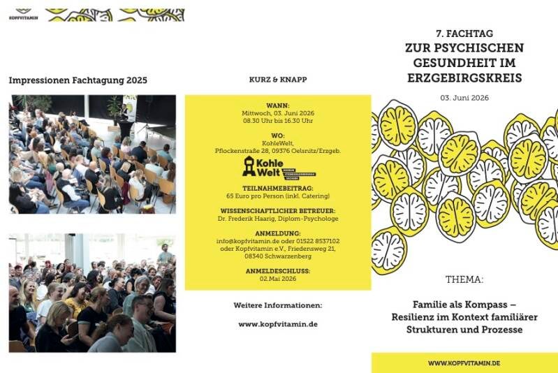 Wir freuen uns zum 7. Fachtag zur psychischen Gesundheit im Erzgebirgskreis einladen zu dürfen. Dieser wird am 03.06.2026 in der @kohlewelt_museum_oelsnitz Oelsnitz stattfinden. Inhaltlich wird es um das Thema Familienresilienz gehen, mit dem Titel "Familie als Kompass - Resilienz im Kontext familiärer Strukturen und Prozesse".