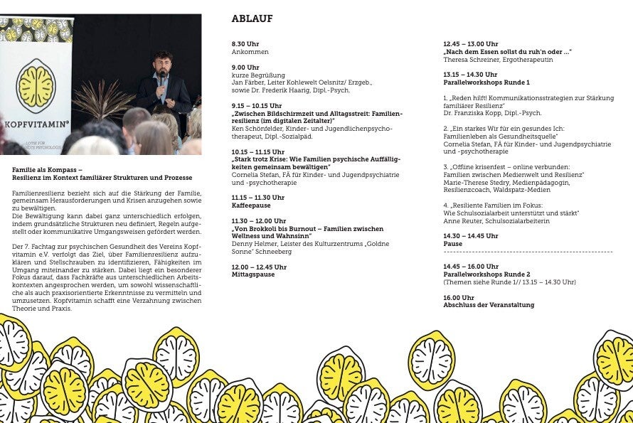 Familienresilienz bezieht sich auf die Stärkung der Familie, gemeinsam Herausforderungen und Krisen anzugehen sowie zu bewältigen. Die Bewältigung kann dabei ganz unterschiedlich erfolgen, indem grundsätzliche Strukturen neu definiert, Regeln aufgestellt oder das kommunikative Umgangsweisen gefördert werden. Der 7. Fachtag zur psychischen Gesundheit unseres Vereins verfolgt das Ziel über Familienresilienz aufzuklären und Stellschrauben zu identifizieren, Fähigkeiten im Umgang miteinander zu stärken. Dabei liegt ein besonderer Fokus darauf, dass Fachkräfte aus unterschiedlichen Arbeitskontexten angesprochen werden sollen, um sowohl wissenschaftliche als auch praxisorientierte Erkenntnisse vermittelt zu bekommen und umzusetzen. Kopfvitamin schafft eine Verzahnung zwischen Theorie und Praxis. Und auch im Jahr 2026 werden Referent:innen aus der therapeutischen Praxis (u.a. Cornelia Stefan, HBK Klinikum Zwickau und Ken Schönfelder, KJP Praxis Auerbach) berichten und Erkenntnisse präsentieren. Zudem soll in verschiedenen Workshops vermittelt werden, worin konkrete Möglichkeiten bestehen, die Resilienz der eigenen oder zu betreuender Familien zu stärken. Unter anderem solle dabei die Schulsozialarbeit (Anne Reuter, Oberschule Pestalozzi Annaberg-Buchholz), der Medienkonsum (Marie-Therese Stedry, Waldspatz-Medien) sowie die Kommunikation näher beleuchtet werden (Dr. Franziska Kopp). Der Fachtag spricht unterschiedlichen Professionen in der therapeutischen, sozialen, pädagogischen und psychosozialen Arbeit an. Flyer können auch zugeschickt werden. Anmeldungen unter info@kopfvitamin.de oder unter +49 1522 8537102. #familienresilienz #kopfvitamin #kohlewelt